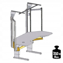Le poste de travail ergonomique anti-TMS est constitué d'une table de travail réglable en hauteur, d'une structure frontale et de 2 latérales pour l'aménagement d'accessoires.