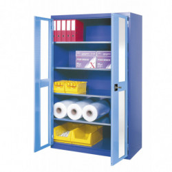 Nos armoires à portes battantes sont destinées aux professionnels qui souhaitent optimiser le rangement dans l'atelier ou le bureau. Ce mobilier professionnel est proposé avec 2 ou 4 étagères et portes battantes pleines ou transparentes. Nous proposons également une armoire à bacs avec portes perforées pour faciliter le rangement d'outils.