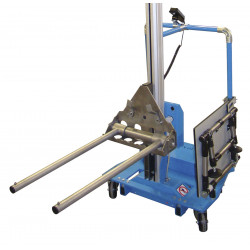 Le chariot mini gerbeur semi-électrique est destiné au transport, à la manutention et au levage de bobines, bacs, cartons, sacs, rouleaux... jusqu'à 90 kg dans l'atelier.