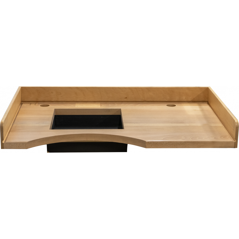 Plateau de poste de travail sertisseur 1200x735mm, avec fosse 400x400mm et rebords hauteur 100mm.